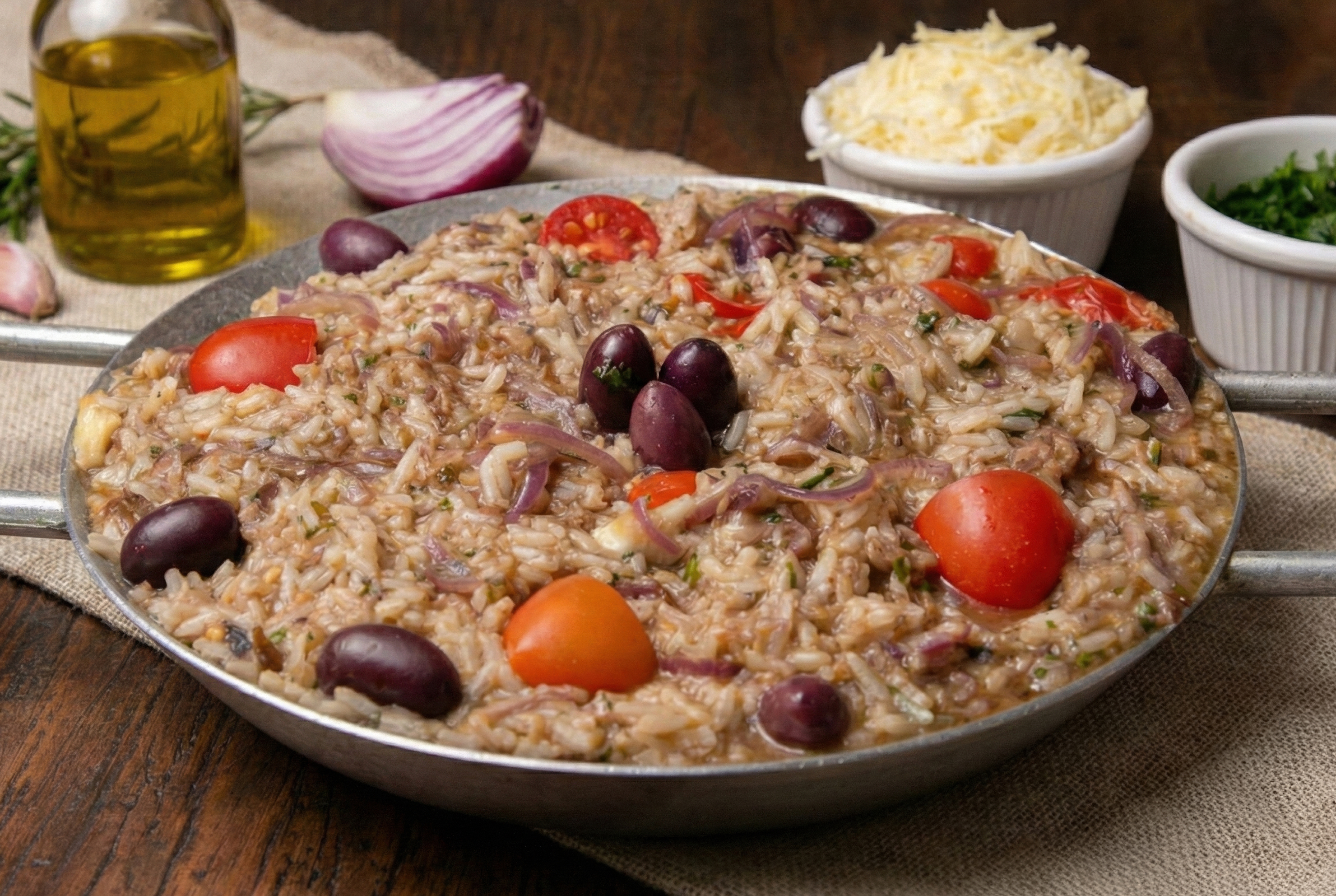 Costela bovina desfiada, queijo parmesão, cebola roxa,